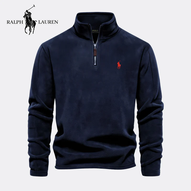 - Refined half-zip collar with durable metal fastening